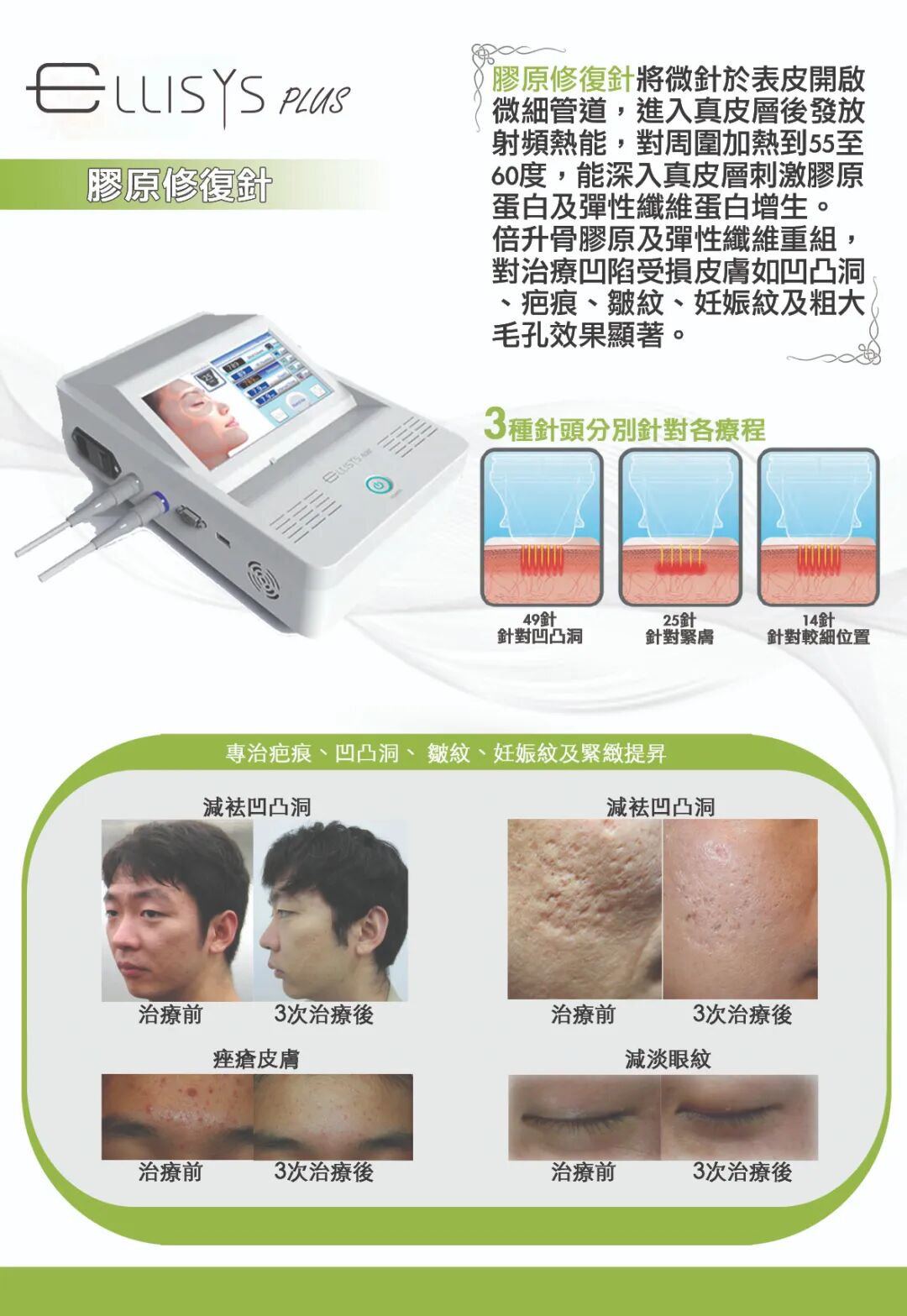 膚品或儀器較難解決,Ellisys Plus微針射頻從裹到外刺激膠原蛋白