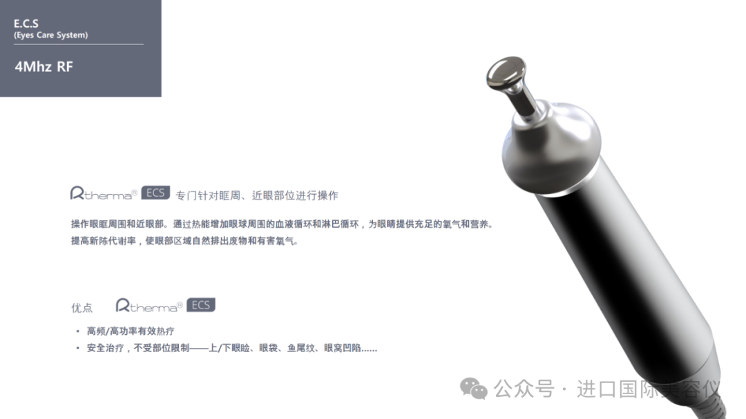 專為眼部肌膚而設通過熱能增加眼部四周的血液和淋巴循環,提高供氧量及新陳代谢率,令眼睛更明亮。