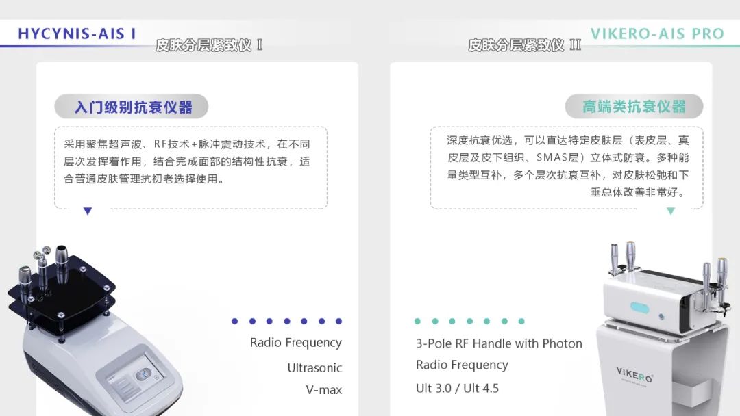 HYCYNIS AIS分层抗衰Ⅰ与VIKERO AIS 分层抗衰PRO版,两款分层抗衰仪器各有什么特点?各有什么优势?下面是详细的对比分析。